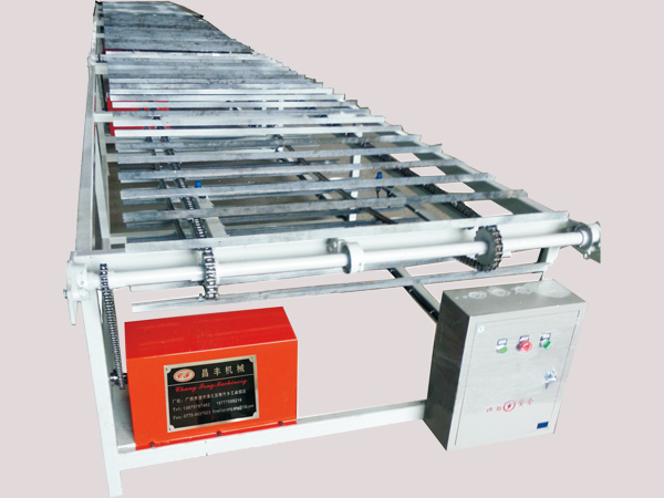 排板輸送線是將板芯經(jīng)涂膠機(jī)涂膠后自動(dòng)輸送到每個(gè)排板臺(tái)前。大大提高生產(chǎn) 效率,代替?zhèn)鹘y(tǒng)人工送板工藝。降低勞動(dòng)成本。解決了輸送難,用人難,易爛板 等問題。